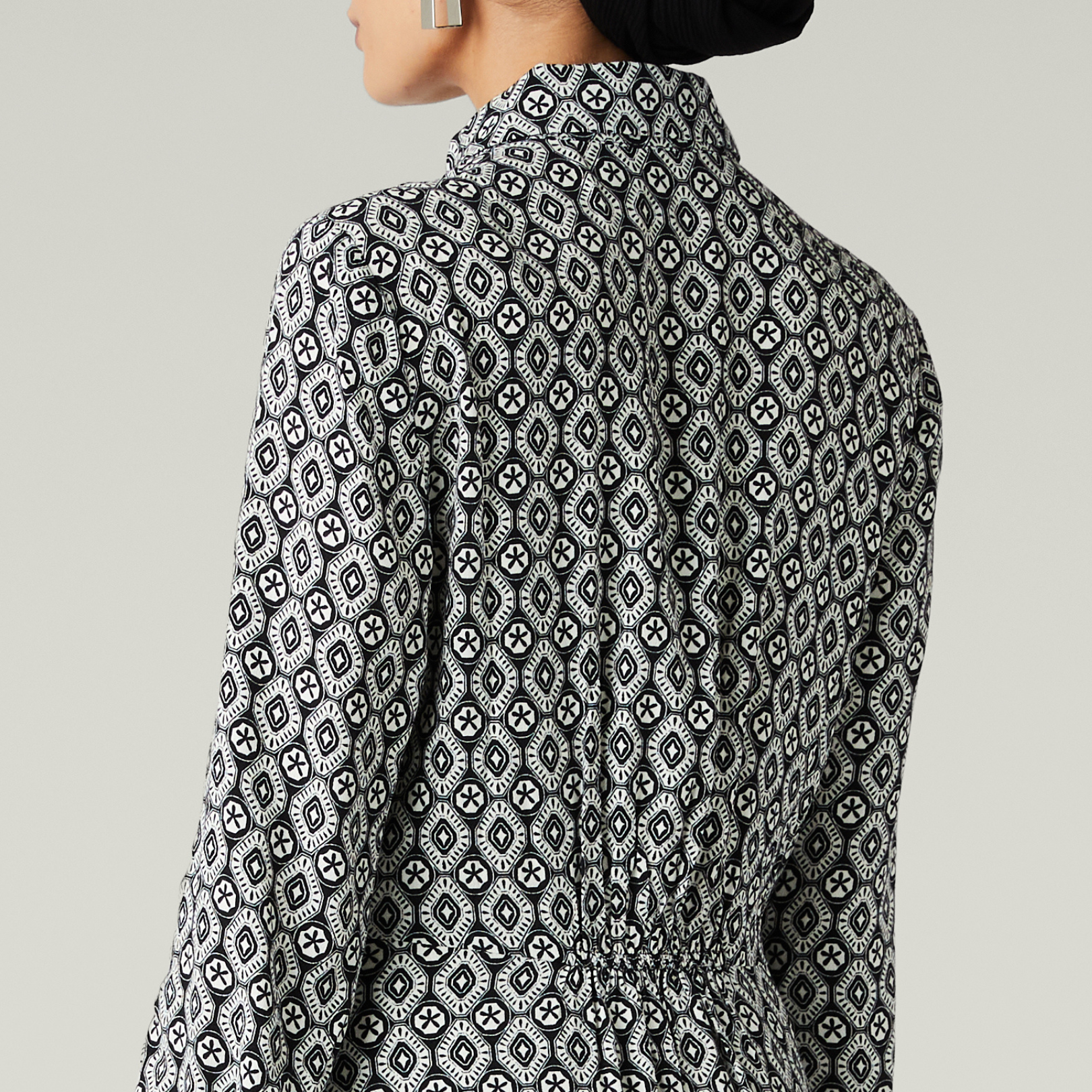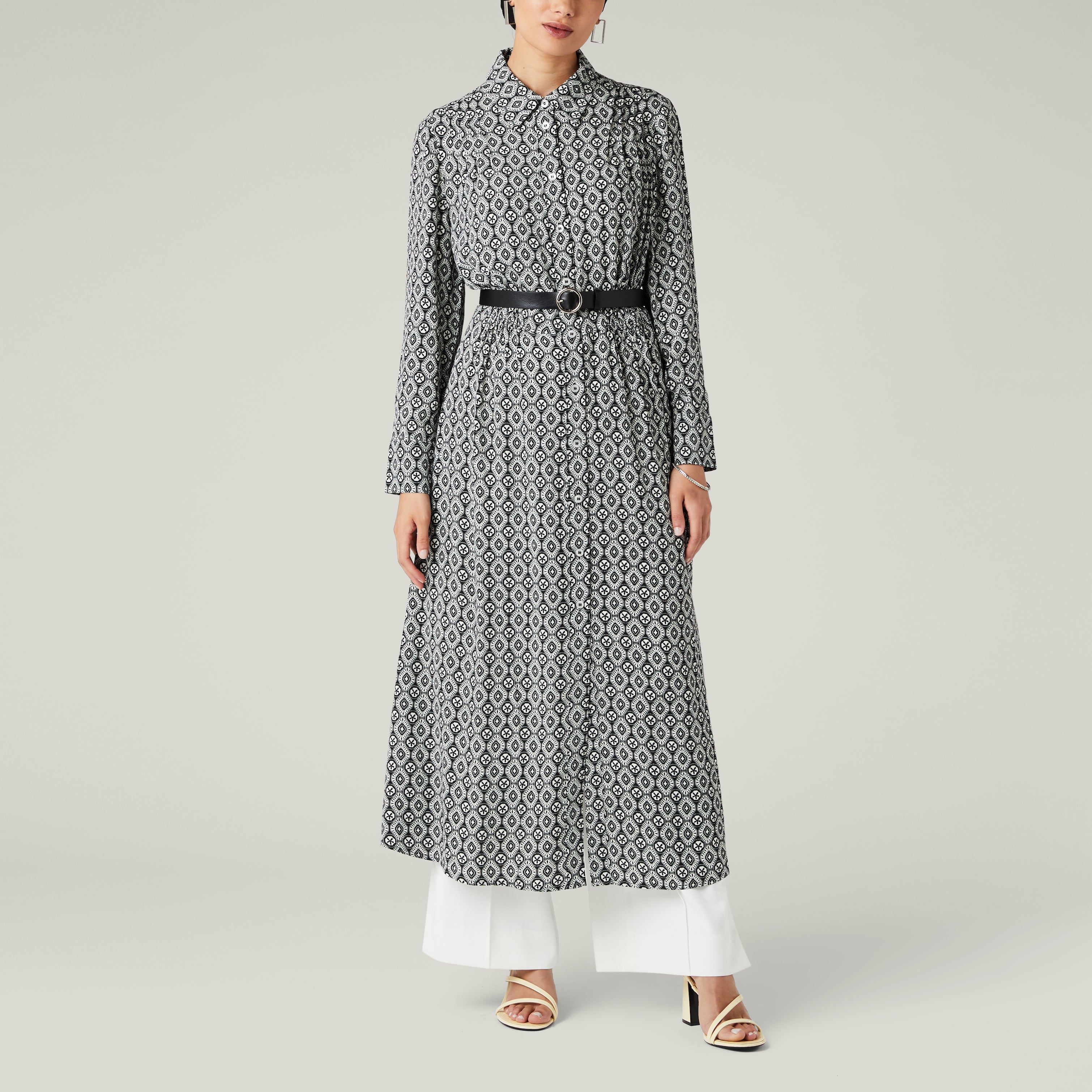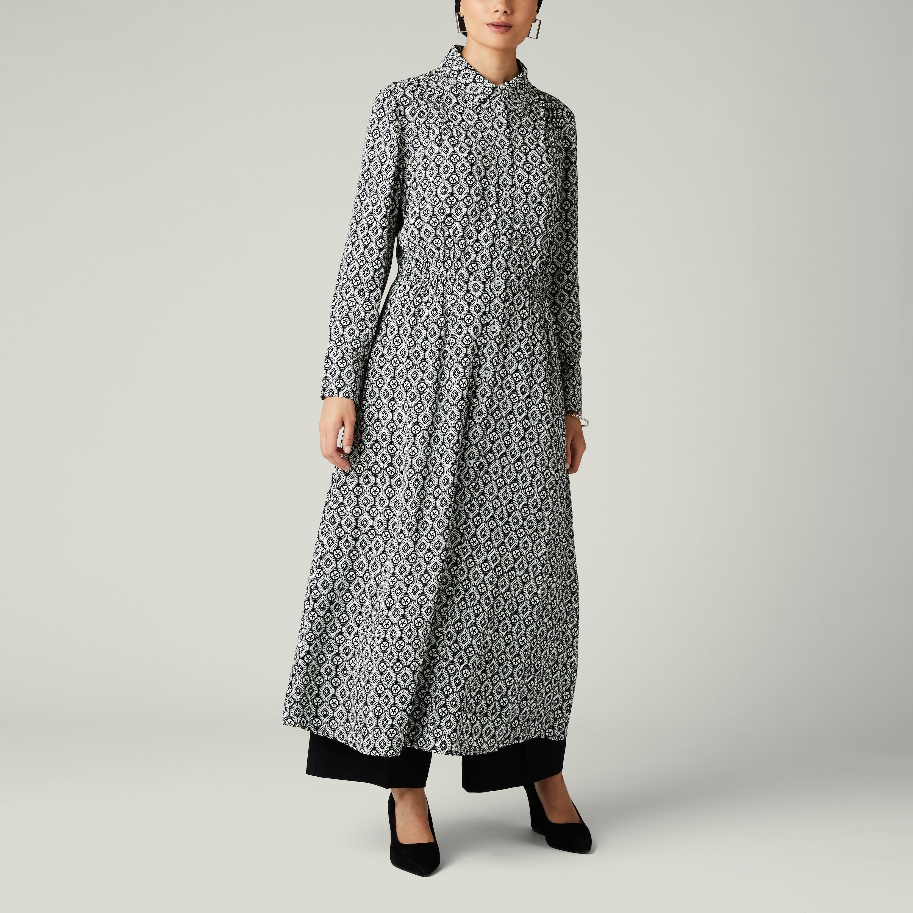 Geometric Print Shirt Dress, Black