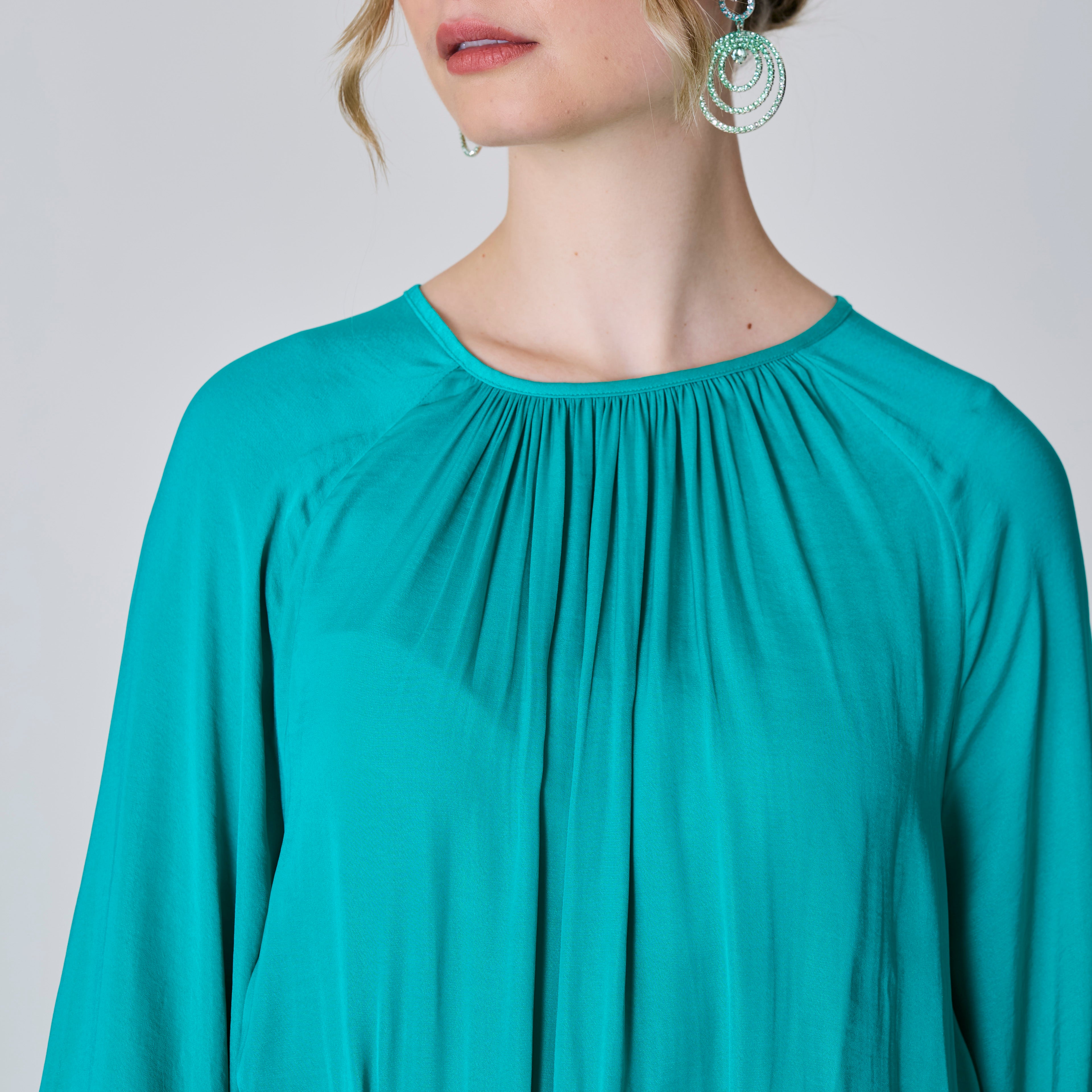 Long Sleeve Satin Dress, Turquoise