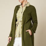 The Woolen Minstrel Cardigan – a whisper of refinement woven into every fiber. Crafted from extra fine merino wool. The covered button detailing at the neckline and cuffs are akin to musical notes, adding a crescendo of grace to this harmonious ensemble. Imagine wrapping yourself in a cascade of clouds – this cardigan is the earthly equivalent.